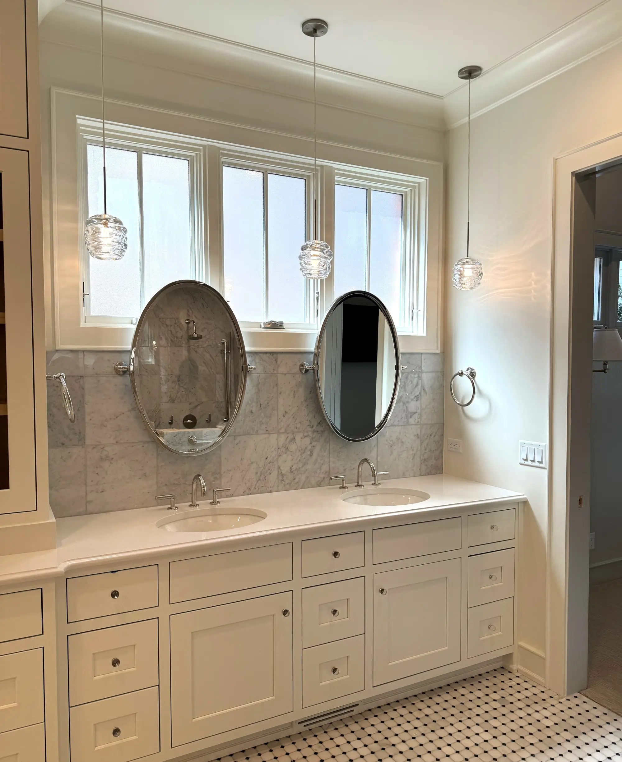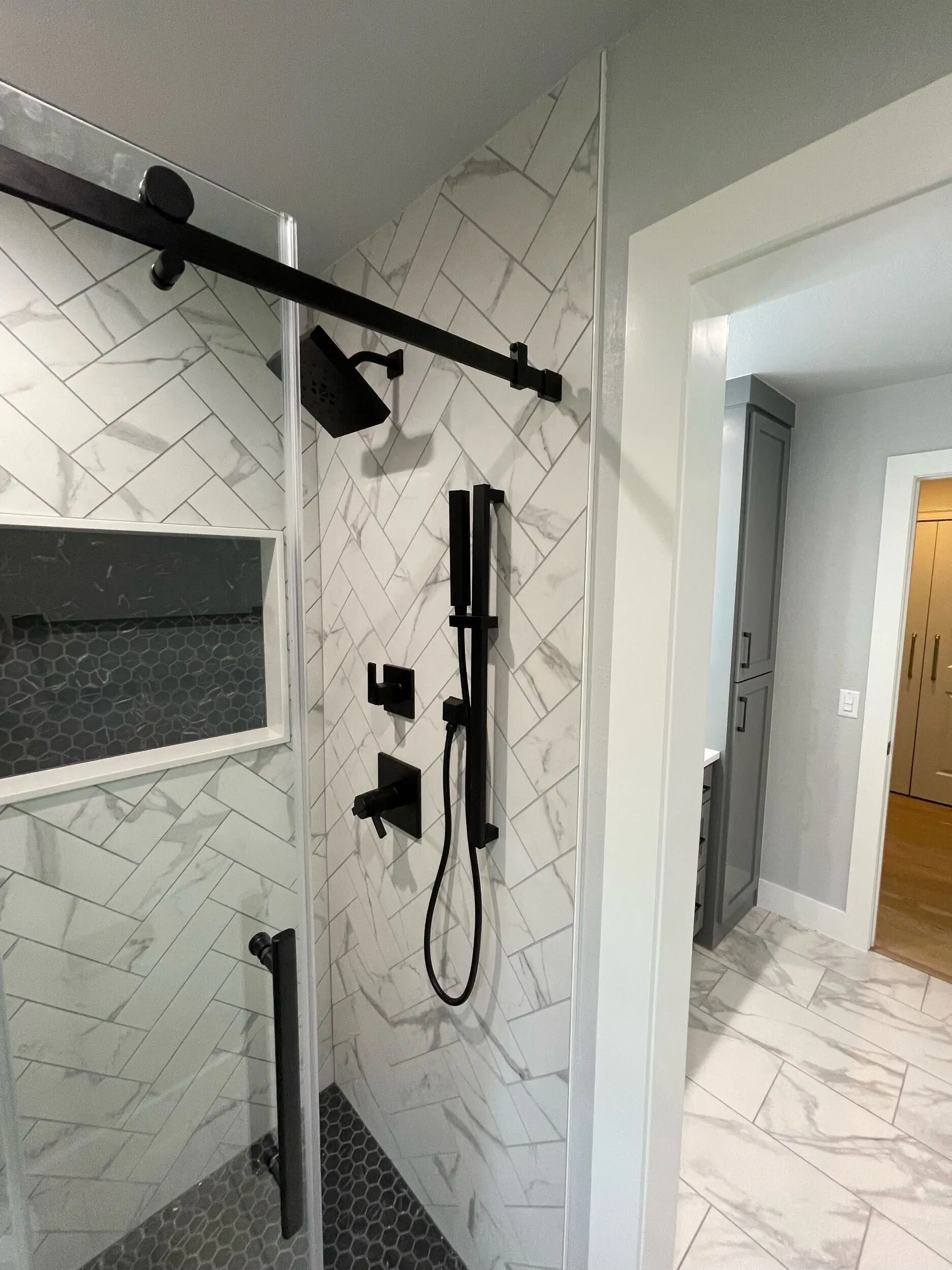 This bathroom remodel in Fayetteville, Arkansas, completed by local NWA custom home building company Rare Bird Builders features high functionality and a truly modern aesthetic.